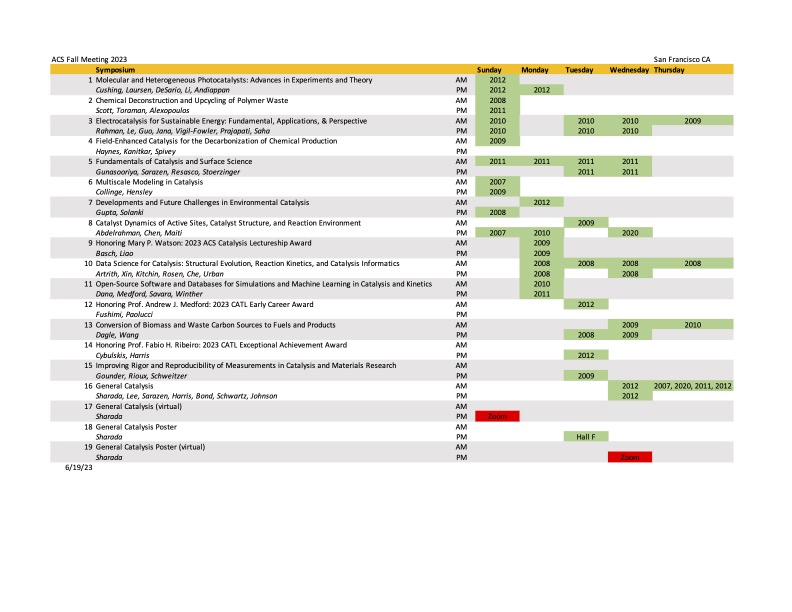 ● Highlights of the program include the Monday ACS Catalysis Lectureship symposium in honor of Mary Watson, Tuesday CATL Division Early Career Award symposium in honor of AJ Medford, and Tuesday CATL Exceptional Achievements Award symposium in honor of Fabio Ribeiro.
